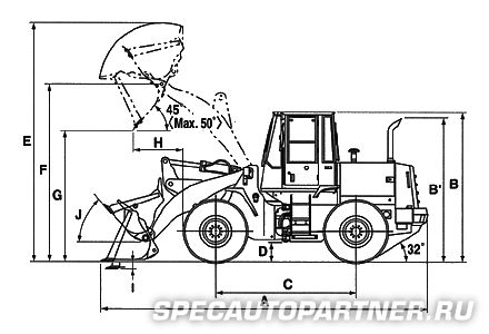 | B' | Высота по выхлопной трубе | 3250 |