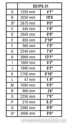 * — Включает в себя массу оборудования бульдозера и массу трактора без системы ROPS и кабины. ** — Включая блок управления гидросистемой. *** — LH: L — длина отвала, H — высота отвала. Размеры Komatsu D37P-21