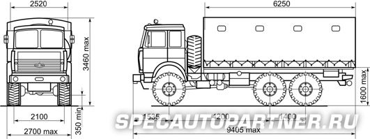 Бортовой. Колесная формула 6x6, полная масса автомобиля 25150, двигатель ЯМЗ-238ДЕ2 (Евро-2). КПП ЯМЗ-239. Бортовой автомобиль повышенной проходимости предназначен для перевозки людей и грузов по всем видам дорог.